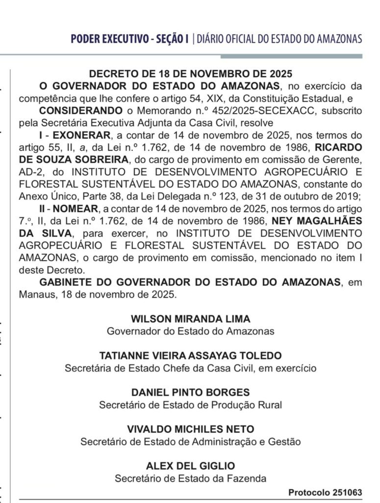 GOVERNADOR NOMEIA NEY MAGALHÃES PARA A GERÊNCIA DO IDAM EM MANAQUIRI.